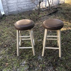 Bar Stools 2 Wood And Brown Leather 24 “By 12 “$20Apopka, FL