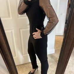 Black Jumpsuit with Pearl Mesh Sleeves$10Halndle Bch, FL