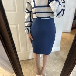 Navy and White Geometric Long Sleeve Pencil Dress$10Halndle Bch, FL
