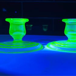 Beautiful antique green uranium Vaseline glass candlestick holders. Circa 1920’s$55West Palm Beach, FL