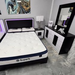 Brand New Queen Bed with Led Lights, MATTRESS and 2 Nightstands - Cama Queen Con Luces Led, Colchón y Mesas De Noche Todo Nuevo a Estrenar … Fast 🚚$850Pompano Beach, FL