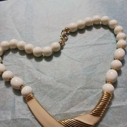 Vintage Trifari Necklace White Beads Enamel & Gold Tone Pendant Choker $55Miami, FL