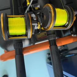 Pair Of PENN Senator 113H conventional fishing reel mounted on a fishing rod. $200Sunny Isles Beach, FL