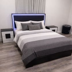 Brand New Queen Bed with Led Lights, MATTRESS and 2 Nightstands - Cama Queen Con Luces Led, Colchón y Mesas De Noche Todo Nuevo a Estrenar … Fast 🚚$850Pompano Beach, FL