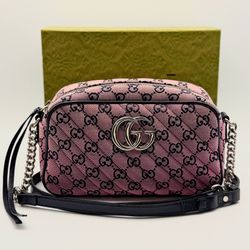 Gucci GG Marmont Quilted Pink Fabric GG Canvas Small Shoulder Bag & Box$750Boca Raton, FL