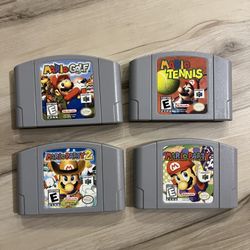 NINTENDO 64 N64 -MARIO PARTY -MARIO PARTY 2 -MARIO GOLF -MARIO TENNIS ALL CLEAN LIKE BRAND NEW ALL ORIGINAL $$125.00 TAKES ALL$125Miramar, FL