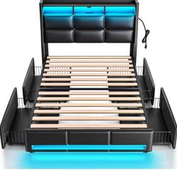 New in box-Queen LED Bed Frame with 2 Storage Drawers Pockets and PU Leather Black Tufted Headboard$180Oakland Park, FL