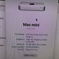 Mac Mini 2012 16gb + 256gb Keyboard And Mouse Included $100Miami, FL