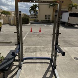 Olympic bar, curl bar, bumper plates, weight station rack, step platform$89Miami, FL
