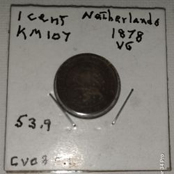 NETHERLANDS KINGDOM 1 CENT 1878 RULER:WILLIAM III,CROWNED RAMPANT LION,LEFT$5Biscayne Park, FL