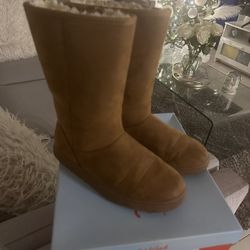 UGG , TAN SUEDE BOOTS; WITH Cream Fue Size 8$89Hollywood, FL