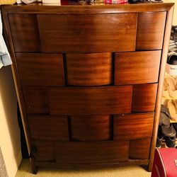 Like New Solid Oak Queen Bed Frame, Mattress, Headboard, 2 Drawer End Table & Tall Dresser$50Miami Beach, FL