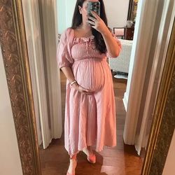 Women's Pink Smocked Midi Dress Great for pregnancy and not pregnant medium$30Miami, FL