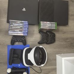 Playstation 4 with 1 controller, games, and virtual reality camera/headset/controllers AND XBOX One with 2 controllers and games$400Hialeah Gardens, FL