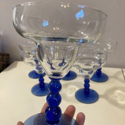 SET of 6 Vintage Libbey "Metropolis" Margarita Glasses w/ Cobalt Blue Bubble Stem Barware Drink Ware $55Fort Lauderdale, FL