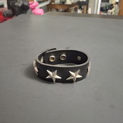 Vintage Black Leather Punk Style Unisex Bracelet With 5 Star Studs Riveted In Silvertone, 1" Wide Adjustable With Double Snap Closure$3Oakland Park, FL