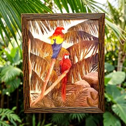 🦜 Large Tropical Parrot Wall Art Painting Framed 32x25$50Pompano Beach, FL