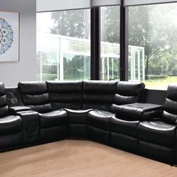 Black Leather Sectional Sofa with Chaise & Recliner $1,499Miami, FL