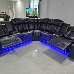 Black Leather Power Reclining Sectional – Lights, USB, Wireless Charging, Cup Holders$3,500Oakland Park, FL
