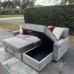 Light Gray Sectional Sofa w/ Pullout Ottoman & Chaise Storage(Delivery Available)$550Delray Beach, FL