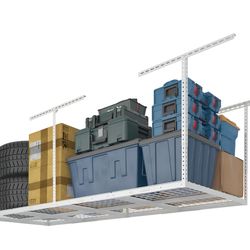 FLEXIMOUNTS 4x8 Overhead Garage Storage Rack w/Hooks Adjustable Ceiling Storage Rack, 96" Length x 48" Width x 40" Height, 22''-40" Ceiling Dropdown, $100Pompano Beach, FL
