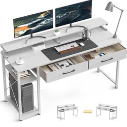 White 55” Computer Desk with Drawers, Shelves & Monitor Stand – Like New$90Homestead, FL