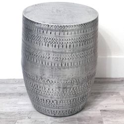 Drum Accent Table in Antique Silver with Tribal Pattern, - Like New$100Miami, FL