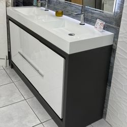 60" Double Sink Free Standing Anthracite Gray and Glossy White Color Bathroom Vanity $1,499Miami, FL