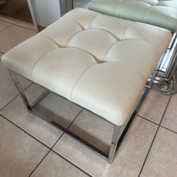 Modern Tufted White Faux Leather Ottoman / Bench - Chrome Base$50Miami Beach, FL