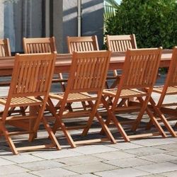 BRAND NEW Open Box 9 Piece Rectangular Dining Set Stacking Chairs 100% Solid FSC Hardwood Ideal Furniture Set for Outdoor
