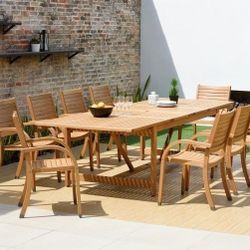 *BRAND NEW* 11 Piece Rectangular Extending Table 100% FSC Certified Hardwood For Outdoor With Solid Wood Chair Dinning Set