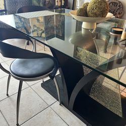 Modern Glass + Black Pedestal Dining Table + Accent Table W Black Wood$300Miami Beach, FL