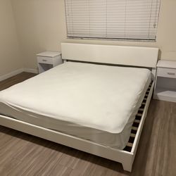King Bed Frame + Base + 2 White Nightstands (Free Mattress)$250Miami, FL
