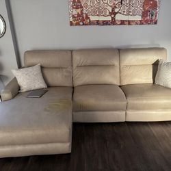 Leather Recliner Sofa Couch Beige White Electric $250Medley, FL