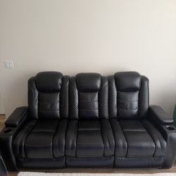 Power Recliner leather black couch sofa electric with outlet and charger Sofa negro reclinable elΓ©ctrico de piel$2,000Miami Gardens, FL