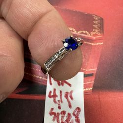 18K Solid White Gold Wedding Ring 4.1Gr Size 8 ( BLUE SAPPHIRE AND DIAMONDS π STONES)$900Hialeah, FL