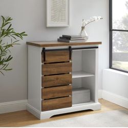 Walker Edison 32 in. Solid White/Rustic Oak Rustic Farmhouse Sliding Slat Door Accent Console$100Pembroke Pines, FL