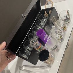 New 21 Pcs Shot Glasses With Wood Case And Stainless Steel Ice Tongs$25Pembroke Pines, FL