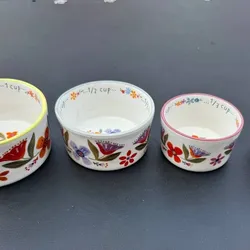 Natural Life Ceramic Measuring Cups Nesting Set of 4 Floral Boho Kitchen$16Halndle Bch, FL