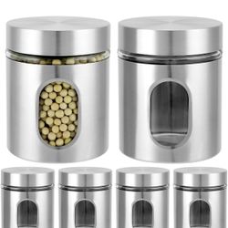 QWORK 6 Pack 20 oz Stainless Steel Glass Kitchen Canisters Set, Airtight Food Storage Containers with Window, for Flour Cookies Spices Grains $25Hialeah Gardens, FL