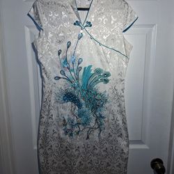 traditional Chinese ladies XSMALL/SMALL satin short sleeve slim Cheongsam Qipao peacock dress$10Boca Raton, FL
