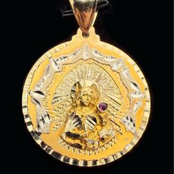 14k solid two tone gold Religious Saint Barbara Natural Ruby stone Diamond cut medallion charm pendant$1,350Boca Raton, FL