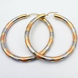 14k tri color solid gold Rounded Satin Smooth Hoop Earrings Diameter 2.6”$1,695Boca Raton, FL
