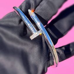 10k solid white gold 2.2CTW Natural Diamond Nail Juste un Clou style Bangle Bracelet size 21$7,500Boca Raton, FL