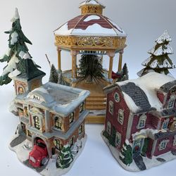 Vtg Christmas Village Lot Avon Fiber Optic Gazebo Porcelain Firehouse & School$40Boca Raton, FL