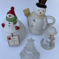 Hallmark Musical Snowman Treat Jar Teapot & Precious Moments Figurine Lot$30Boca Raton, FL