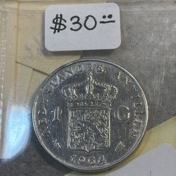Antillas Holandesas 1 Gulden silver coin .720 10g.$30Miami, FL