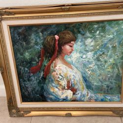 Entre Azules Replica Woman On Dock Oil Painting Pintura W/ Free Méxican Style Chair, Y Silla Gratis G Bruez, W Hodges$174Miami, FL