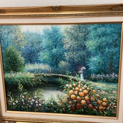 W Hodges, A Woman On A Dock oil Paint / Pintura Aceite, Mujer, Cruzando Puente Con Sombrilla (with Umbrella)$100Miami, FL