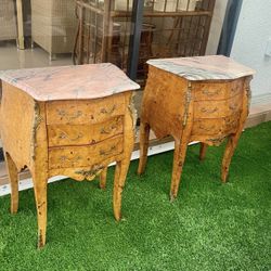Great Pair Of Antique Tables W Burlwood And Marble Top $650Miami, FL